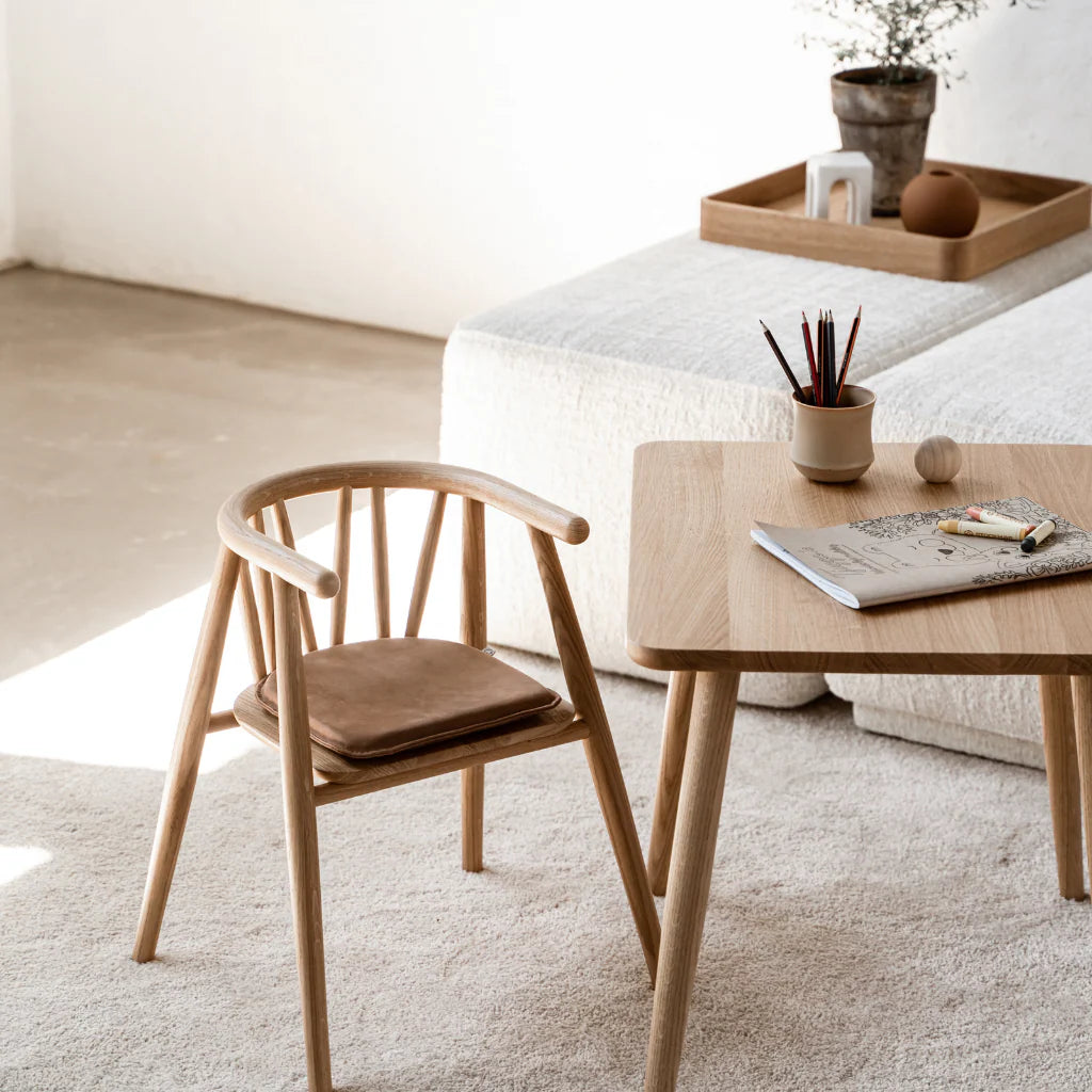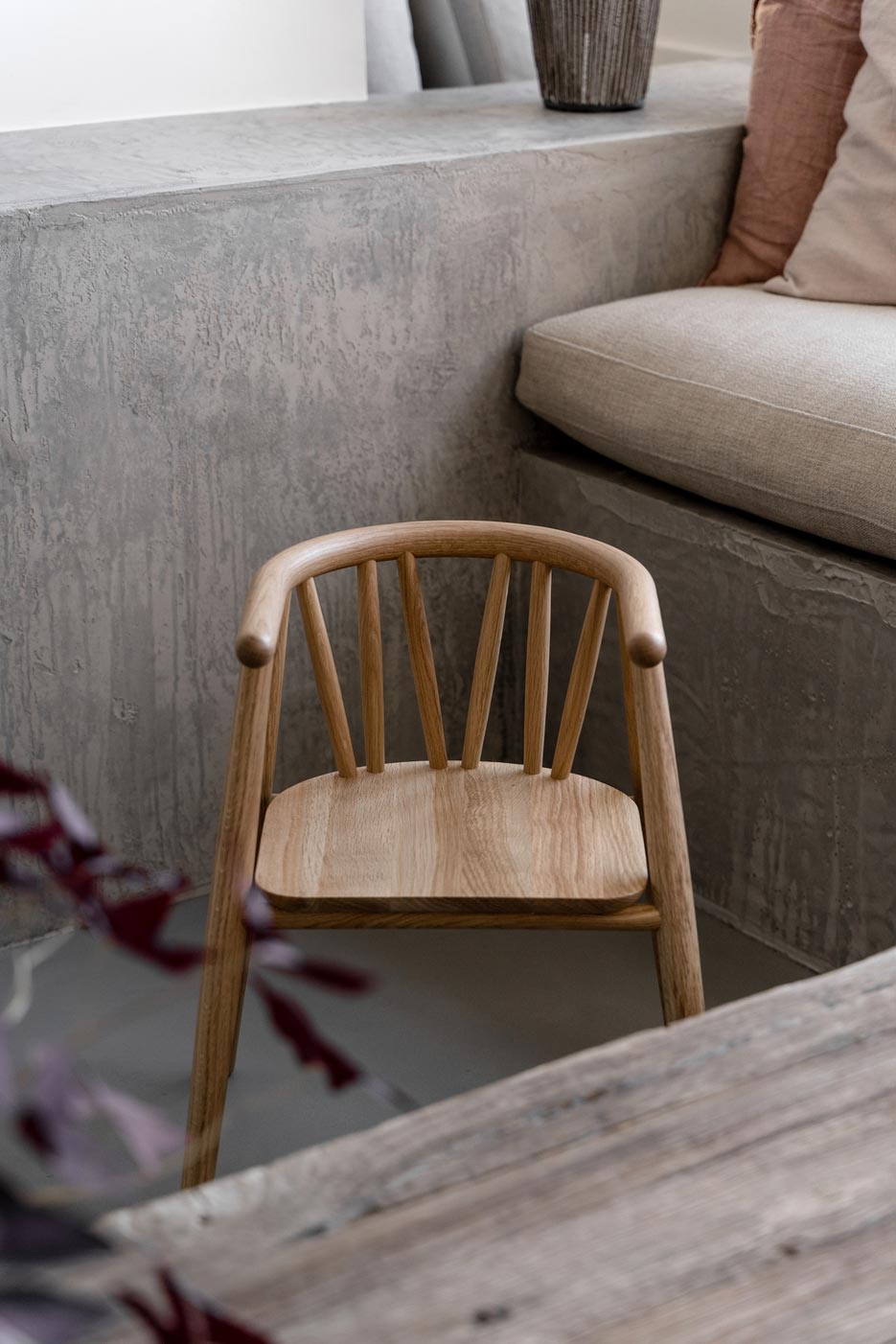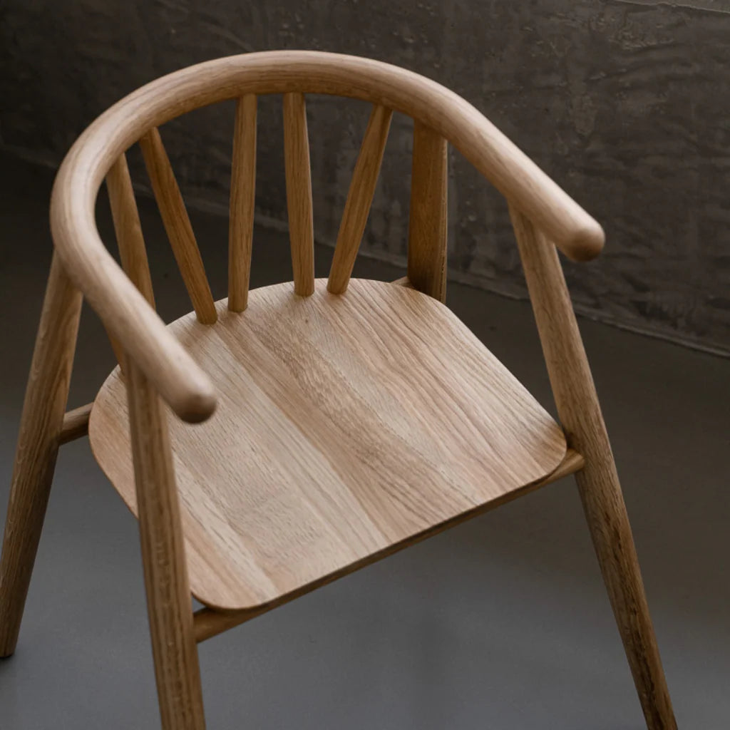 Oaklings Storm børnestol i eg er et bud på en fremtidig dansk designklassiker – skabt med samme kompromisløse tilgang til æstetik og funktionalitet, som kendetegner Oaklings møbler. Designet af Nina Bruun i 2021, kombinerer stolen organiske former med høj komfort og solidt håndværk.