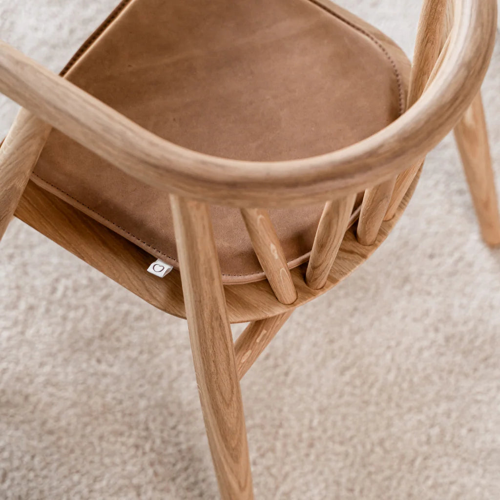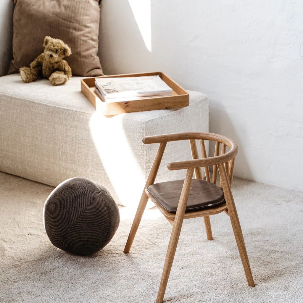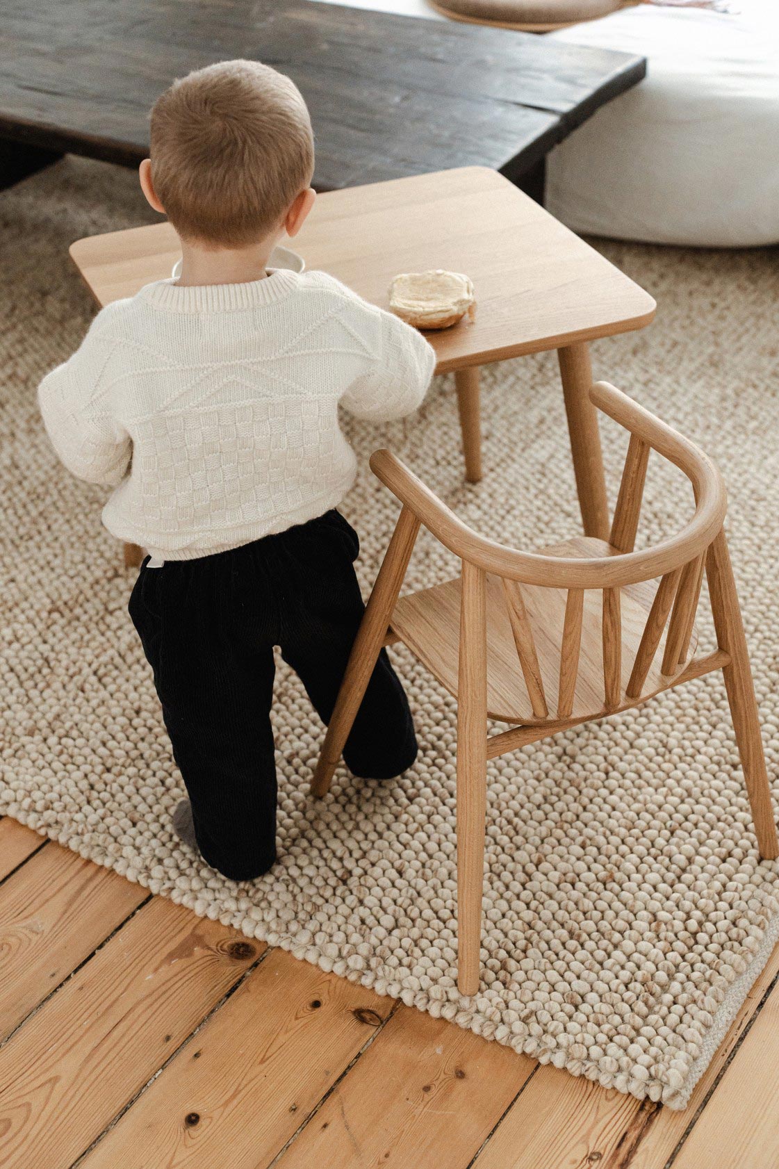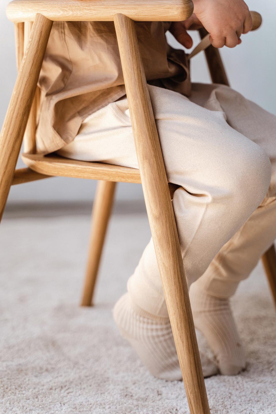 Da egetræ er et naturmateriale, vil hver stol have små variationer i årestruktur, knaster og overflade. Det understreger materialets autenticitet og gør hver Storm børnestol unik.
