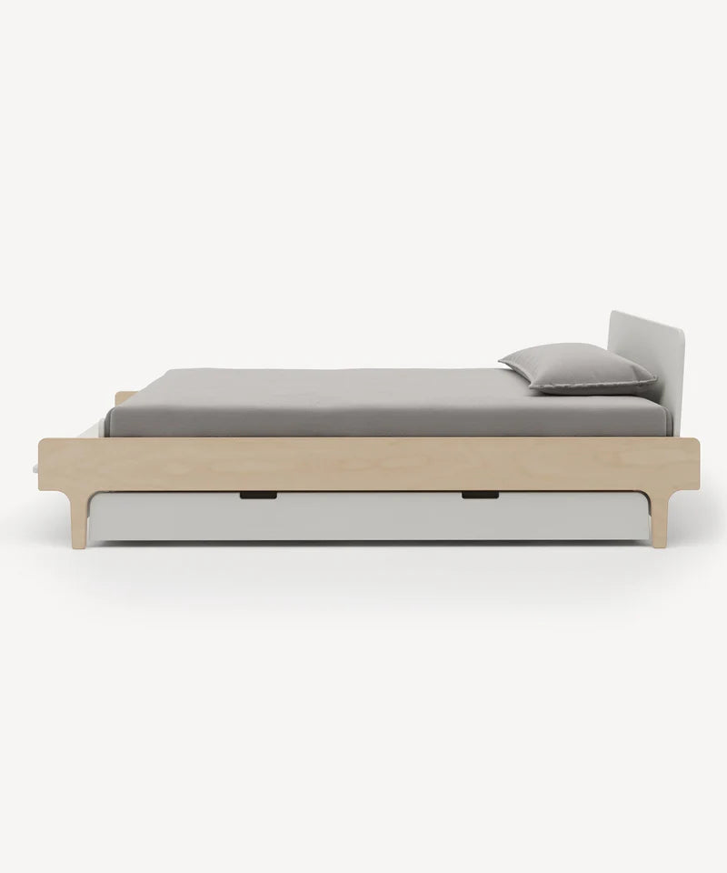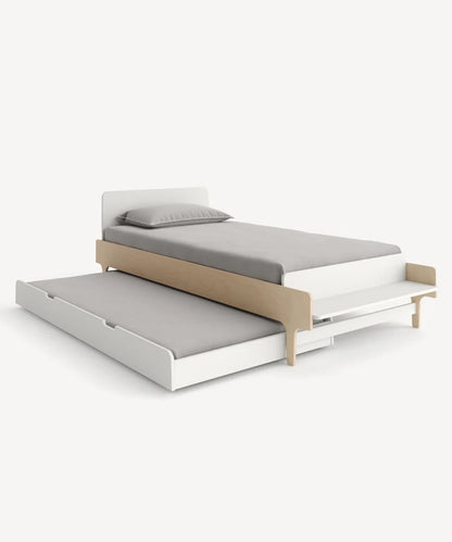 River udtrækssengen fra Oeuf NYC er en smart og pladsbesparende løsning, der udnytter pladsen under sengen optimalt. Den er designet til at passe perfekt sammen med River enkeltsengen og giver ekstra soveplads, når der er overnattende gæster – eller ekstra opbevaring i hverdagen.