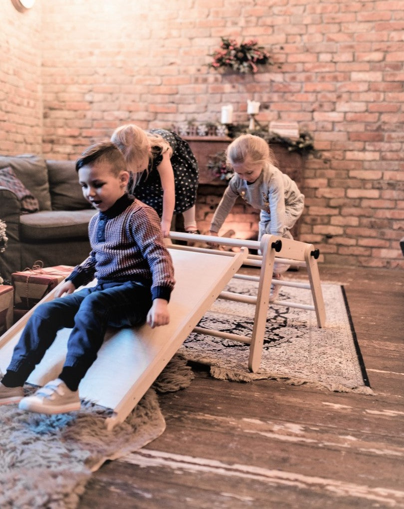 Udvid legen med denne smarte vendbare rampe, der passer til Family-SCL’s Pikler klatretriangel. Rampen kan bruges på to måder: Den ene side har små klatresten, mens den anden er glat og perfekt til rutsj.