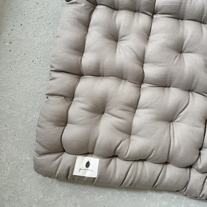 Skab en blød og tryg base for leg med denne legemåtte i økologisk bomuld med kapokfyld. Det allergivenlige fyld og det bløde design gør underlaget ideelt til leg både på ryggen og maven. Legemåtten kan vokse med barnet – først som et trygt sted for baby, siden som en hyggelig plads til tumling, leg eller højtlæsning for større børn.