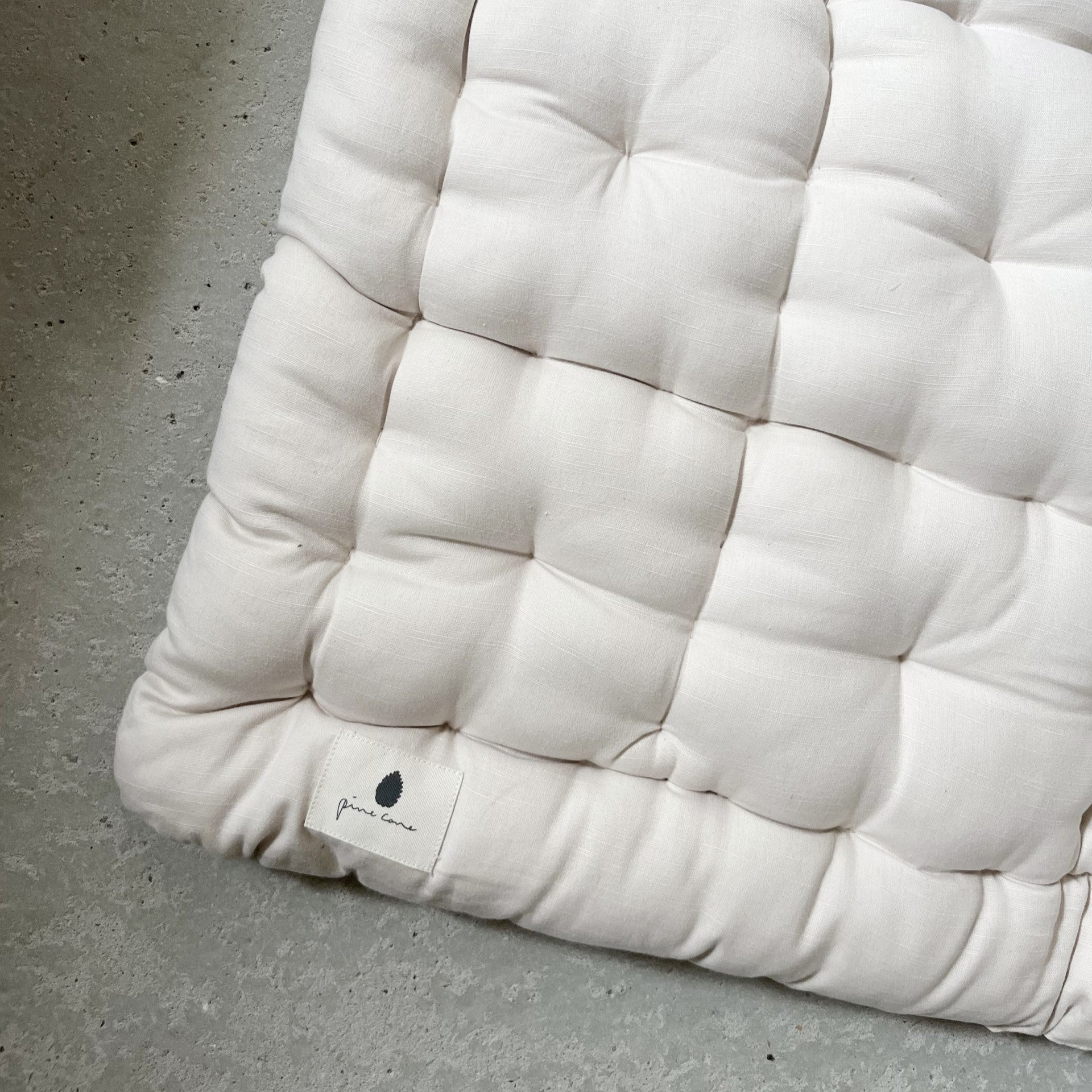 Skab en tryg og blød base for dit barns leg med Pine Cone legemåtte i økologisk bomuld og allergivenligt kapokfyld. Det bløde design gør måtten ideel til de første lege – både på maven og ryggen. Legemåtten kan vokse med barnet og fungerer senere som en hyggelig krog for tumlinger og større børn, når der skal leges, slappes af eller læses bøger.