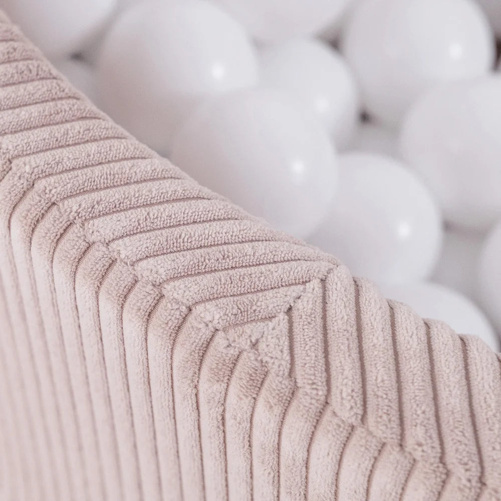 Giv dit barn et trygt og indbydende legeområde med Plush Nest boldbassinet i blød lyserød bred fløjl. Bassinet er ideelt til børn fra ca. 1,5 til 3 år og leveres med 200 bolde i perle, lyserød og guld – perfekte til at skabe sjove og farverige legestunder, der stimulerer både motorik og sanser.