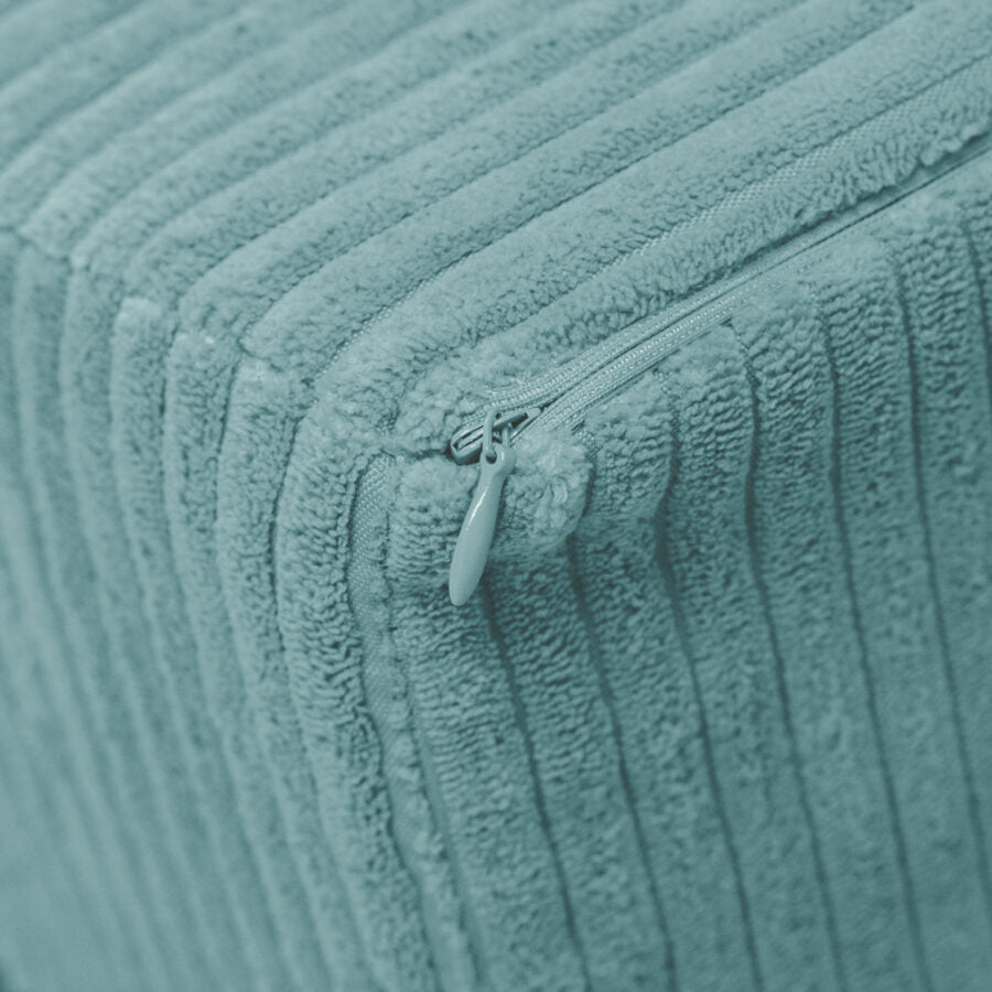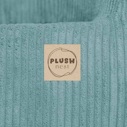Betrækket er udført i eksklusivt premium fløjl (corduroy), som føles ekstra blødt og behageligt mod huden. Den blå farve tilfører et roligt og klassisk udtryk, der både kan fungere som en del af indretningen og som et hyggeligt element i barnets legeunivers.