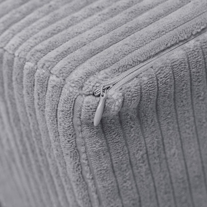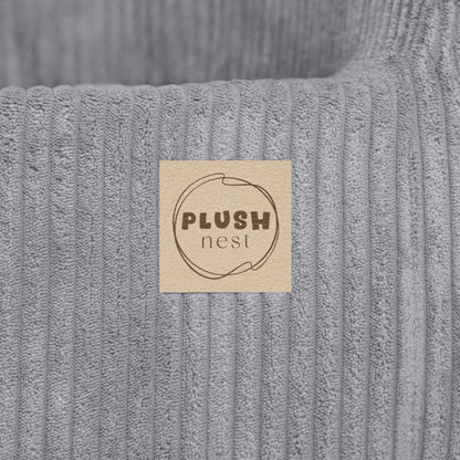 Betrækket er udført i eksklusivt premium fløjl (corduroy), som føles ekstra blødt og behageligt mod huden. Det rolige grå udtryk passer naturligt ind i både børneværelse, stue og legezoner og kan også fungere som et diskret, dekorativt element i hjemmet.