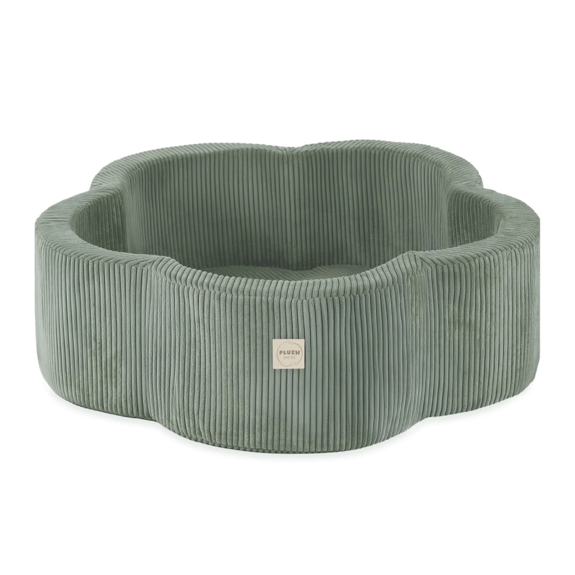 Plush Nest blomsterformet boldbassin – Floral Fun Zone, grøn fløjl, 95×30 cm, inkl. 300 bolde