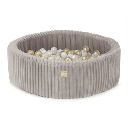 Giv dit barn et trygt og hyggeligt sted at lege med Plush Nest boldbassinet i blød beige Puffy Lamell. Dette elegante og slidstærke bassin er ideelt til børn fra ca. 1,5 til 3 år og leveres med 200 bolde i perle, guld og transparent – perfekte til at skabe sjov, farverig leg, der stimulerer både motorik og sanser.