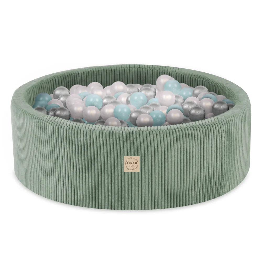 Plush Nest tumlesæt med 3 dele og stort boldbassin – Grøn, premium fløjl