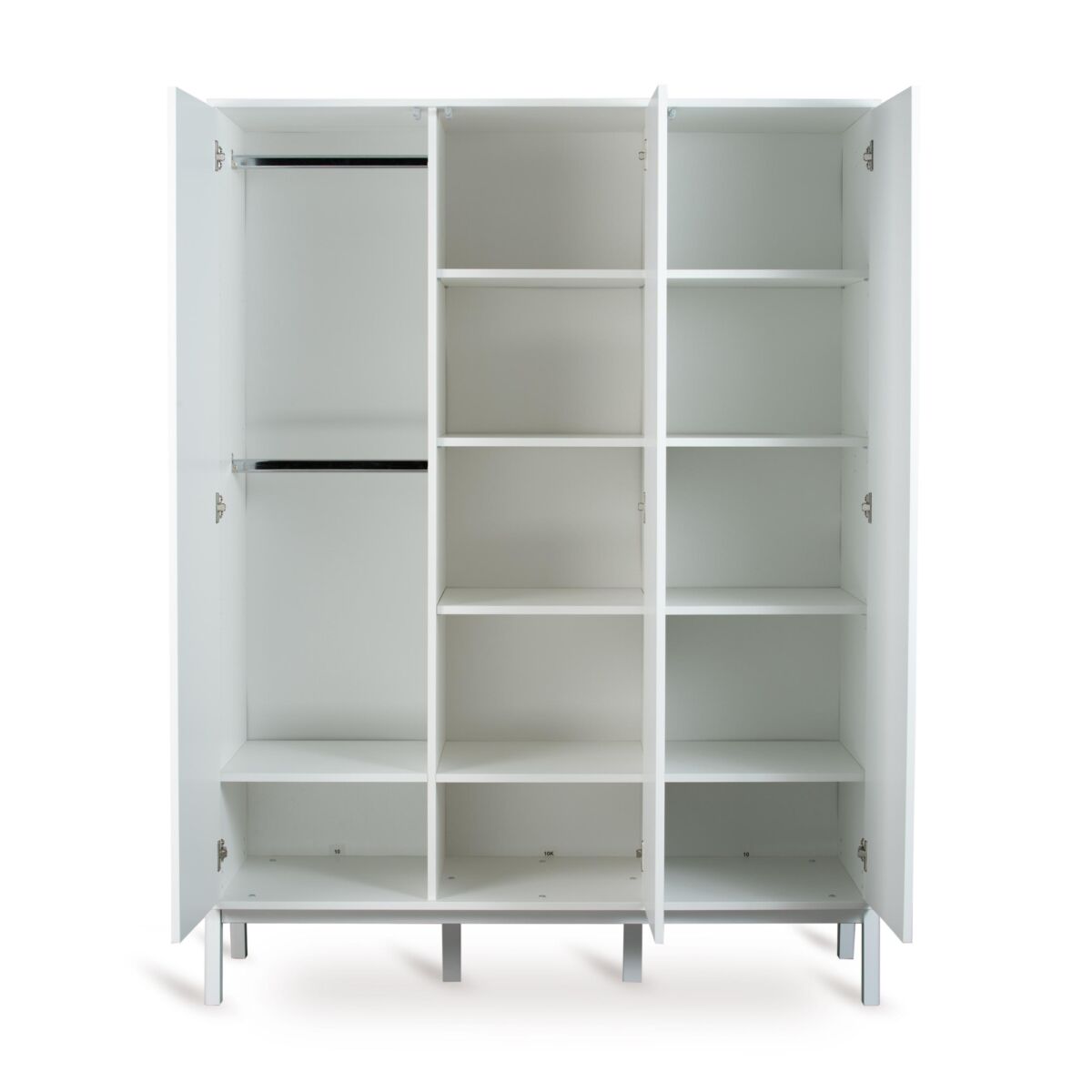 De tre låger åbnes med et let tryk via det integrerede push-to-open system, som skaber et rent og grebsfrit udseende. Indvendigt finder du seks justerbare hylder og to bøjlestænger, så skabet kan indrettes præcis efter jeres behov – uanset om det er små bodyer, større tøjstørrelser eller opbevaringskasser, der skal have plads.