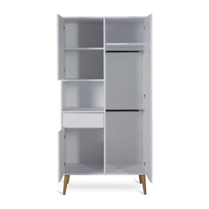 Cocoon-serien er kendt for sin høje kvalitet, og skabet er fremstillet i slidstærkt melaminbelagt spånplade (MFC) med ben i massivt bøgetræ, som giver varme og stabilitet til designet. Ice White-varianten passer smukt ind i både moderne, klassiske og skandinaviske børneværelser.