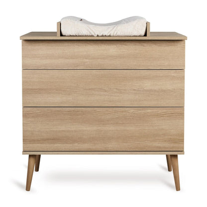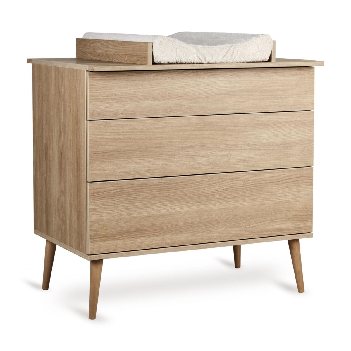 Gør din Flow kommode endnu mere funktionel med denne smukke og praktiske pusletop i farven Honey Ash. Med et enkelt klik forvandler du kommoden til et sikkert og rummeligt pusleområde, hvor både du og din baby får god plads til hverdagens rutiner.