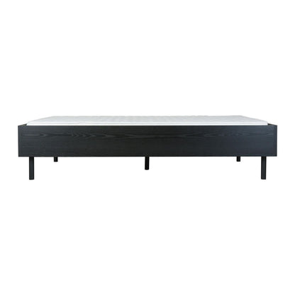 Sengen er fremstillet med ben i massivt asketræ for maksimal stabilitet og styrke. Hovedgærdet og siderne er udført i MDF med askefinér, som giver et smukt, ensartet udtryk og fremhæver træets naturlige struktur. Den dybe, matte tone i Black Ash tilfører et moderne og eksklusivt præg til indretningen.