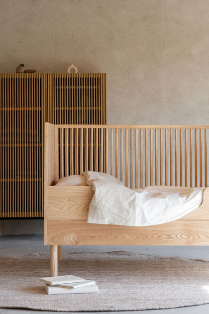 Quax Hai No Ki-sengen i størrelsen 140 x 70 cm er et smukt eksempel på håndværk og design i balance. Med sine bløde, afrundede tremmer og varme overflader i asketræ bringer den ro og naturlig harmoni ind på børneværelset. Navnet Hai No Ki betyder "asketræ" på japansk – og netop ægtheden og nærheden til naturen er kernen i denne kollektion.