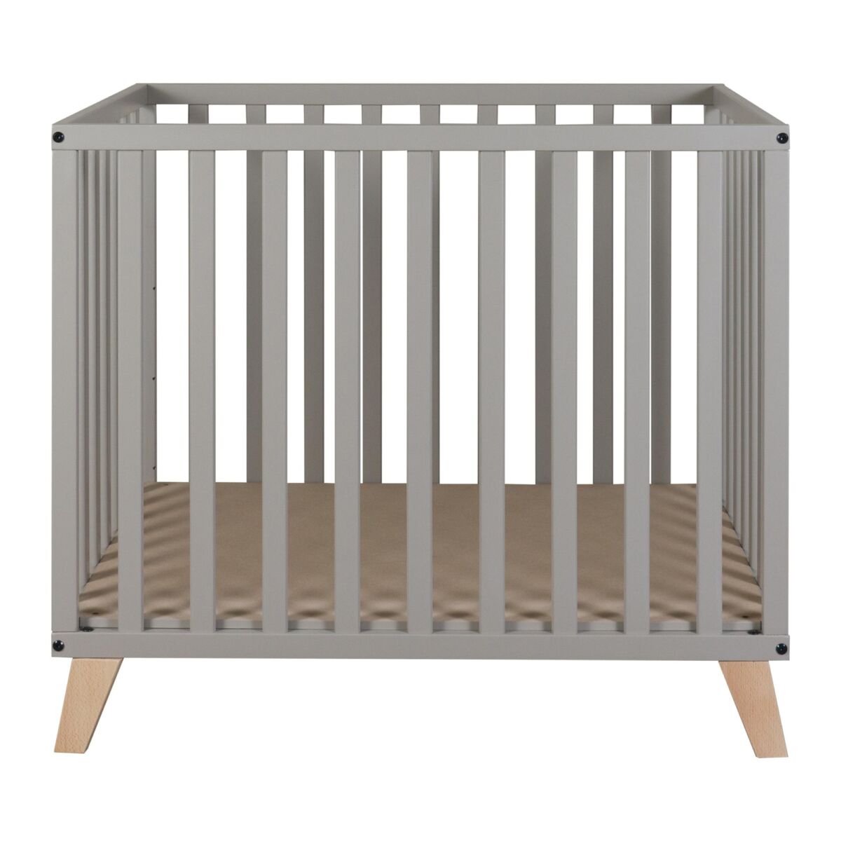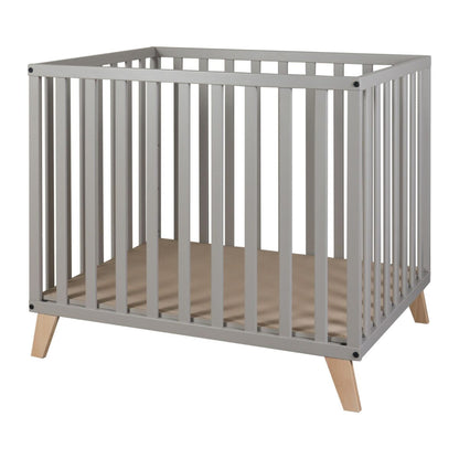 Kravlegården er fremstillet i MDF af høj kvalitet og behandlet med en vandbaseret lak, der overholder EN 71-3-standarden – helt fri for skadelige stoffer. Bunden kan justeres i tre højder, så den nemt kan tilpasses barnets behov gennem de første år.
