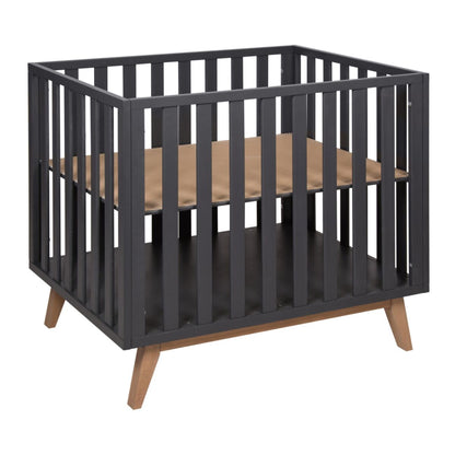 Quax Romain kravlegård i farven Moonshadow forener komfort, funktionalitet og et tidløst design. Den er udført i MDF og massivt bøgetræ med olierede ben, der giver et naturligt og eksklusivt udtryk – perfekt til det moderne børneværelse.