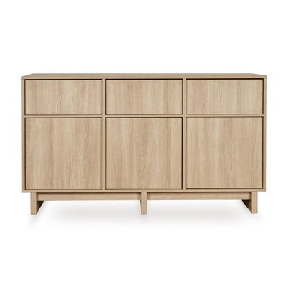 Kommoden har tre store skuffer og tre skabsrum med push-to-open funktion, så du får et let og intuitivt system, der er nemt at bruge i en travl hverdag. De håndtagsfrie fronter understreger det rene udtryk og gør møblet lige så smukt som det er praktisk.