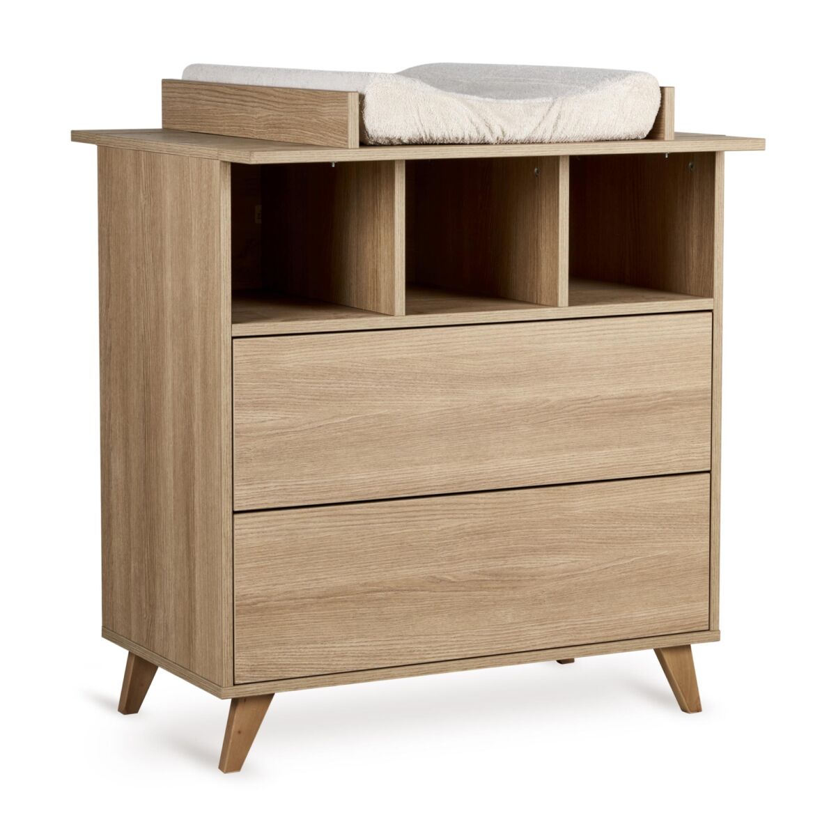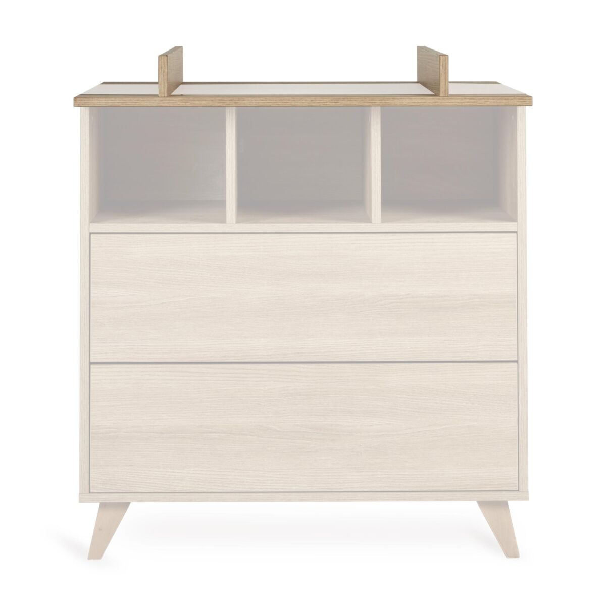 Pusletoppen bevarer det harmoniske udtryk på børneværelset og giver en praktisk løsning, der gør det nemmere at være tæt på den lille under ble- og tøjskift. Når pusleperioden er ovre, kan toppen nemt afmonteres, så kommoden igen fremstår i sin oprindelige form.