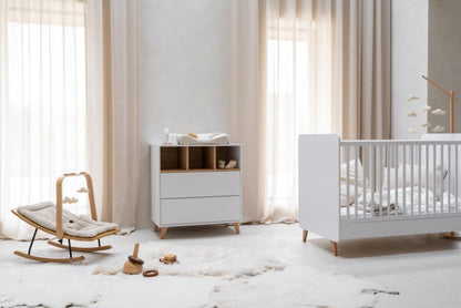 En fleksibel og langtidsholdbar seng, der skaber en tryg og smuk base for både søvn, leg og udvikling. Perfekt til forældre, der ønsker et nordisk og roligt udtryk på børneværelset.