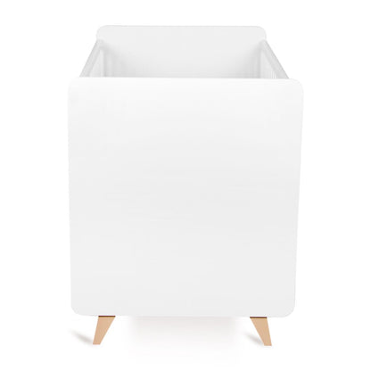 Quax Loft ombyggelig tremmeseng i størrelsen 140x70 cm er skabt til familier, der ønsker et smukt og funktionelt møbel, som kan følge barnet i mange år. Den hvide farve giver et lyst og harmonisk udtryk, mens kombinationen af massivt bøgetræ og melaminbelagte paneler sikrer både stabilitet og lang holdbarhed.