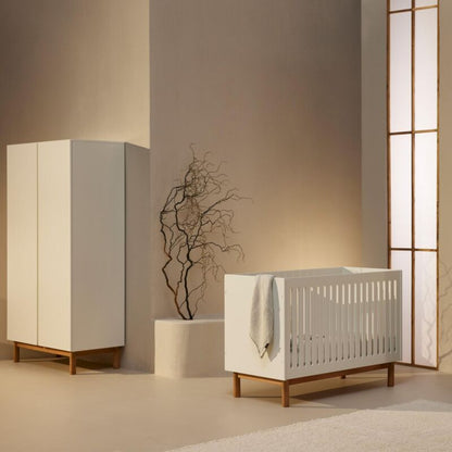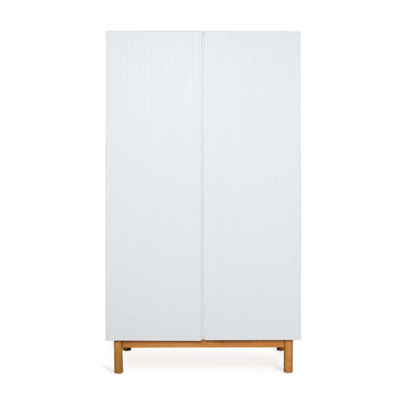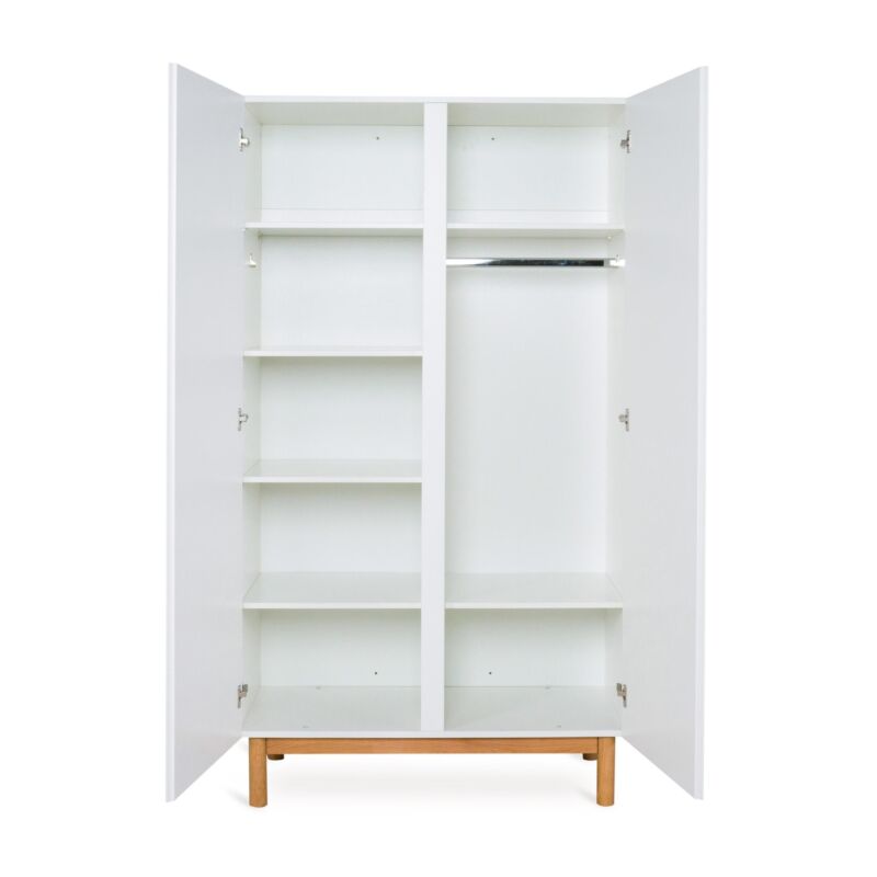 Quax Mood garderobeskab i farven White er et smukt og roligt indslag på børneværelset. De rene, geometriske linjer og de solide bøgeben giver skabet et let og harmonisk udtryk, der passer ind i både moderne og klassiske hjem.