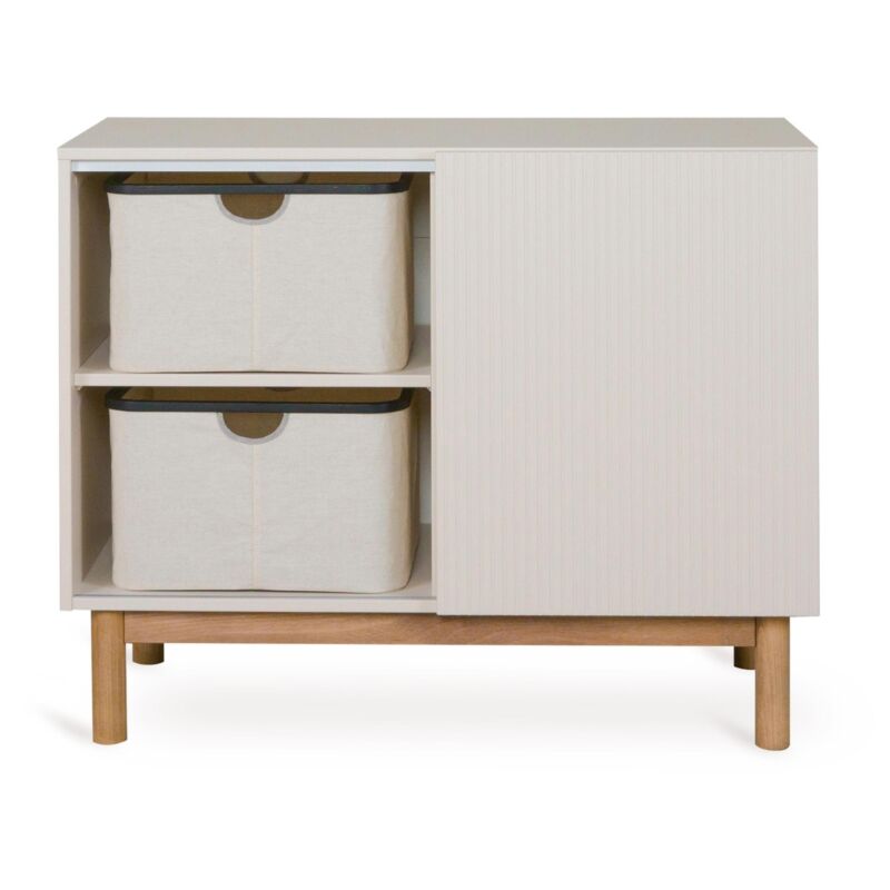 Kommoden kan udvides med den tilhørende pusleforlængelse (540344XX-E), som gør det muligt at skabe en praktisk og stilren pusleplads med samme rolige Mood-æstetik. Ønsker du ekstra organisering, passer Mood opbevaringskurvene (Ref. 65MM013-CRC) perfekt ind i rummet bag lågen.