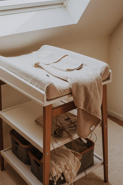 Et funktionelt og smukt puslebord, der skaber ro og struktur omkring dagens mange små rutiner.