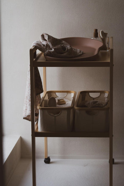 Quax Mori puslebord i Natural er et enkelt og funktionelt valg, der giver dig en fleksibel og rolig pusleplads i hverdagen. Med sit lette, minimalistiske design passer puslebordet ind i både små og store rum – og de praktiske hjul gør det nemt at flytte rundt efter behov.