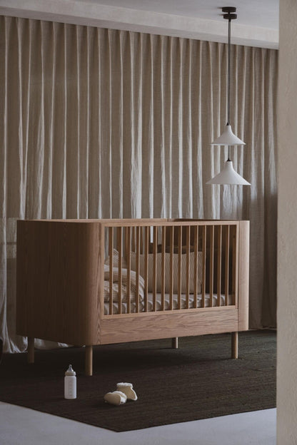 Den smukke Yume Tremmeseng fra Quax i størrelsen 140 x 70 cm skaber en rolig og hyggelig atmosfære på børneværelset. De organiske former og håndlavede bløde kurver giver Tremmesengen et naturligt og elegant udtryk, der indbyder til varme og tryghed omkring barnets søvn.