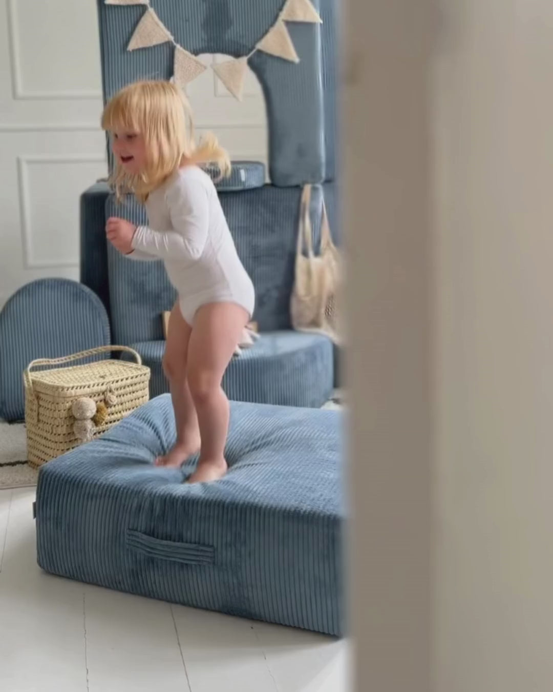 Trampolinen passer perfekt sammen med Shappy Play Sofa og kan forlænge den med 60 cm, så den samlede længde bliver 220 cm. Med samme bredde som sofaens base passer den sømløst ind i legestrukturer, giver stabilitet og åbner for endnu flere kreative måder at bruge den på.