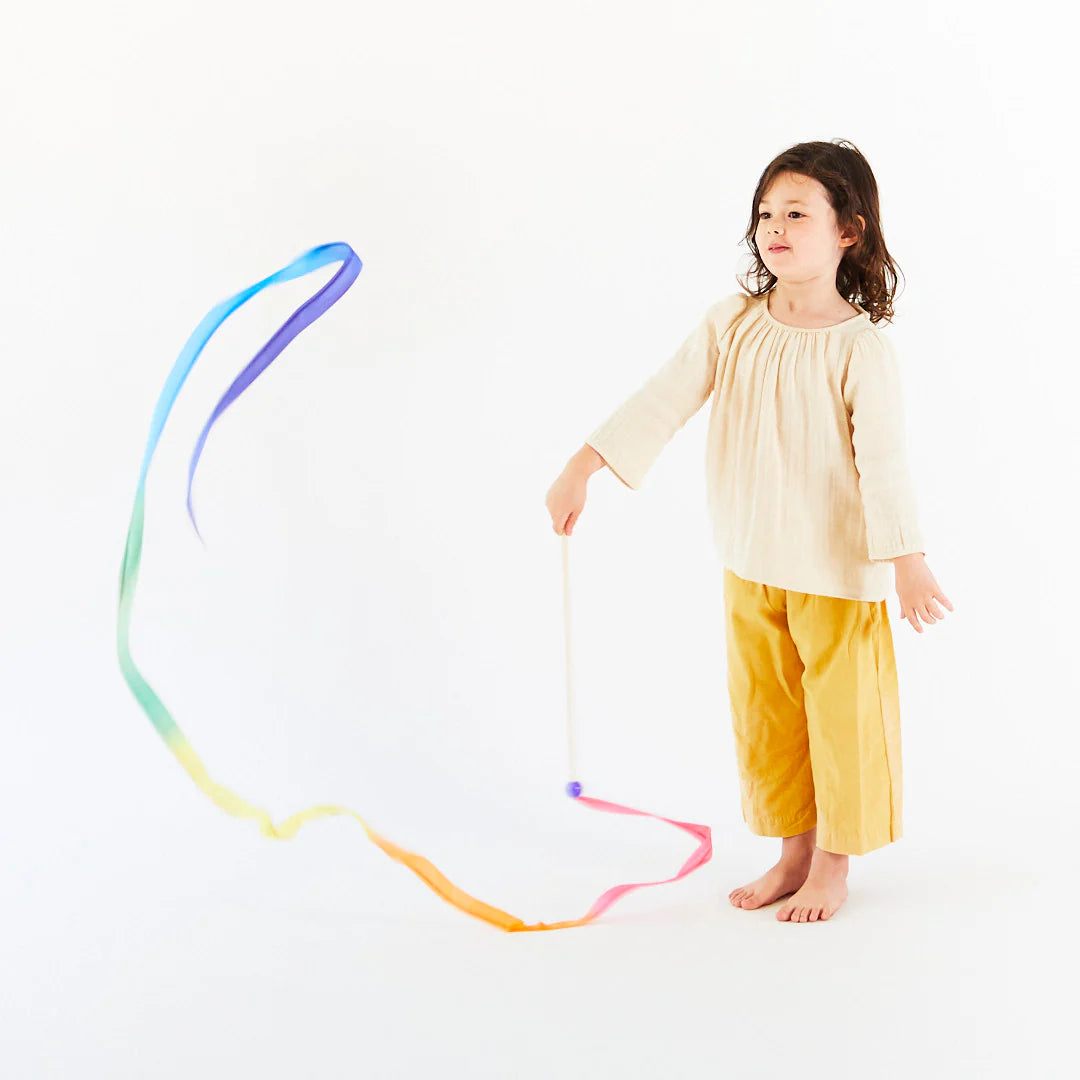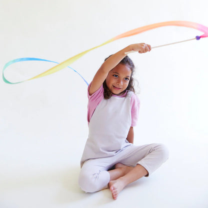 Med regnbuen i hånden bliver legen ekstra magisk. Vimplen fra Sarah’s Silks inviterer til fri bevægelse, dans og fantasi – og stimulerer samtidig motorik og kropsbevidsthed hos både små og større børn. Brug den til at fiske i fantasivand, skrive bogstaver i luften eller danse som vinden.