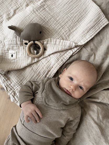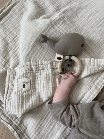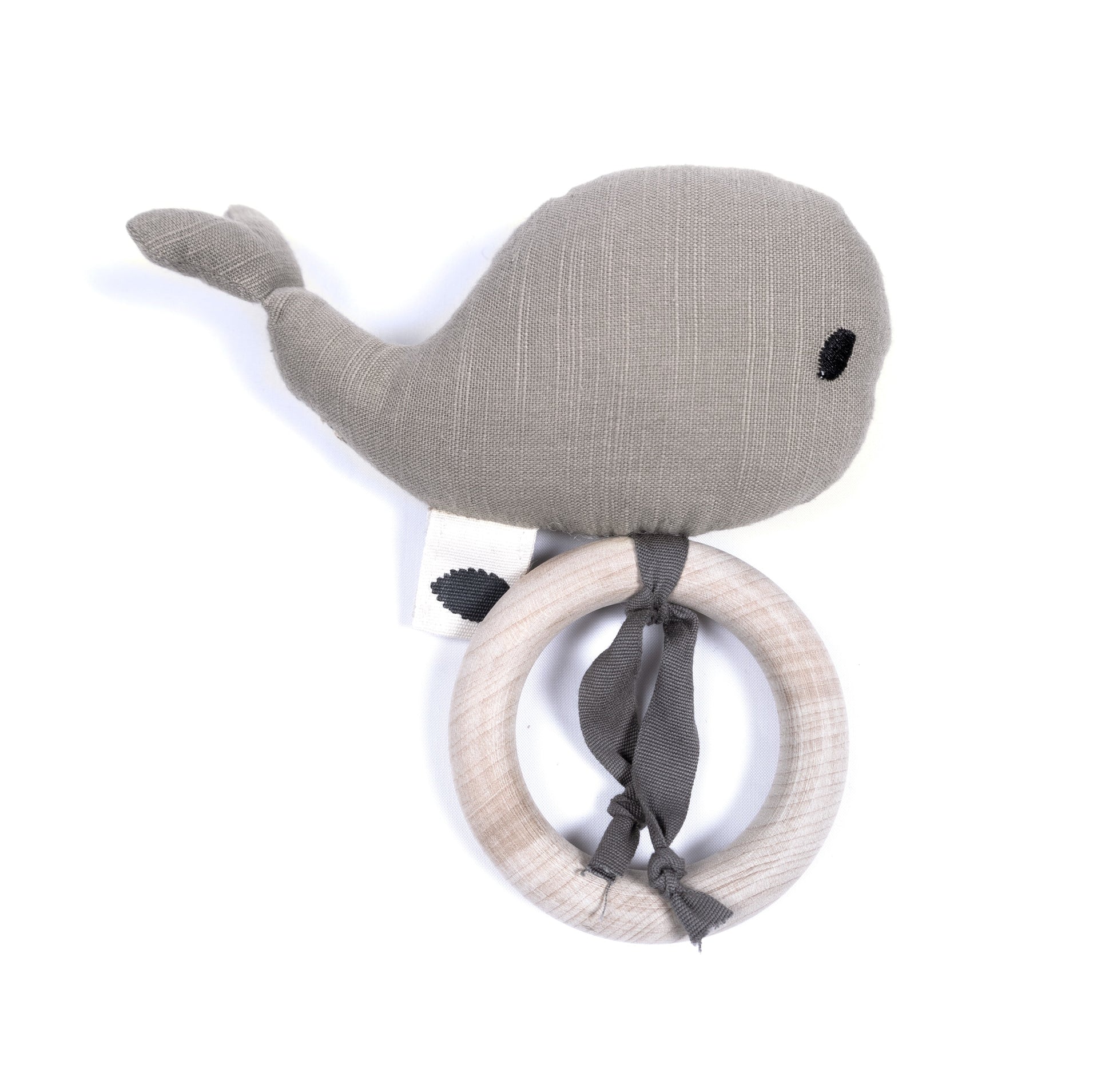 Waldo ranglen fra Pine Cone er en kær lille ven for de mindste. Den blide raslelyd vækker barnets nysgerrighed, mens træringen gør det nemt for små hænder at gribe om ranglen. Waldo, den søde hval, er lavet af økologisk bomuld med fyld af Oeko-Tex-certificeret polyester, så du trygt kan lade dit barn udforske og lege.